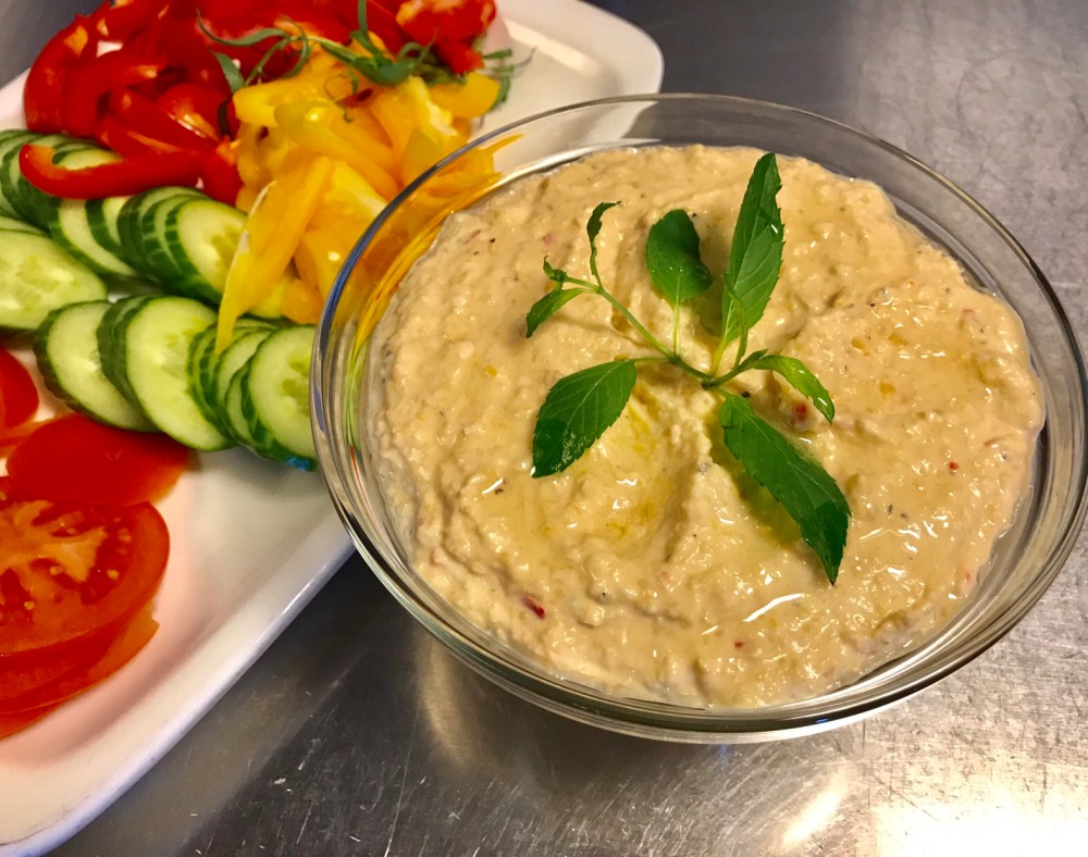 Smaker fantastisk, og er sundt i tillegg. Jeg lager den uten tahini, som egentlig bare er knuste sesamfrø… Kan ha litt vanlige sesamfrø i hvis Man ønsker. Liker og litt chili i for litt sting. Er en kjempe proteinkilde.