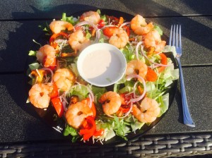 Scampi, nudler og hjemmelaget hvitløksbrød