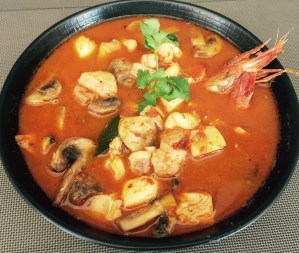Scampi (kongereker) i hot saus med red curry og røkt paprika