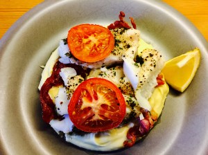 Ovnsbakt torsk med potetmos og bacon